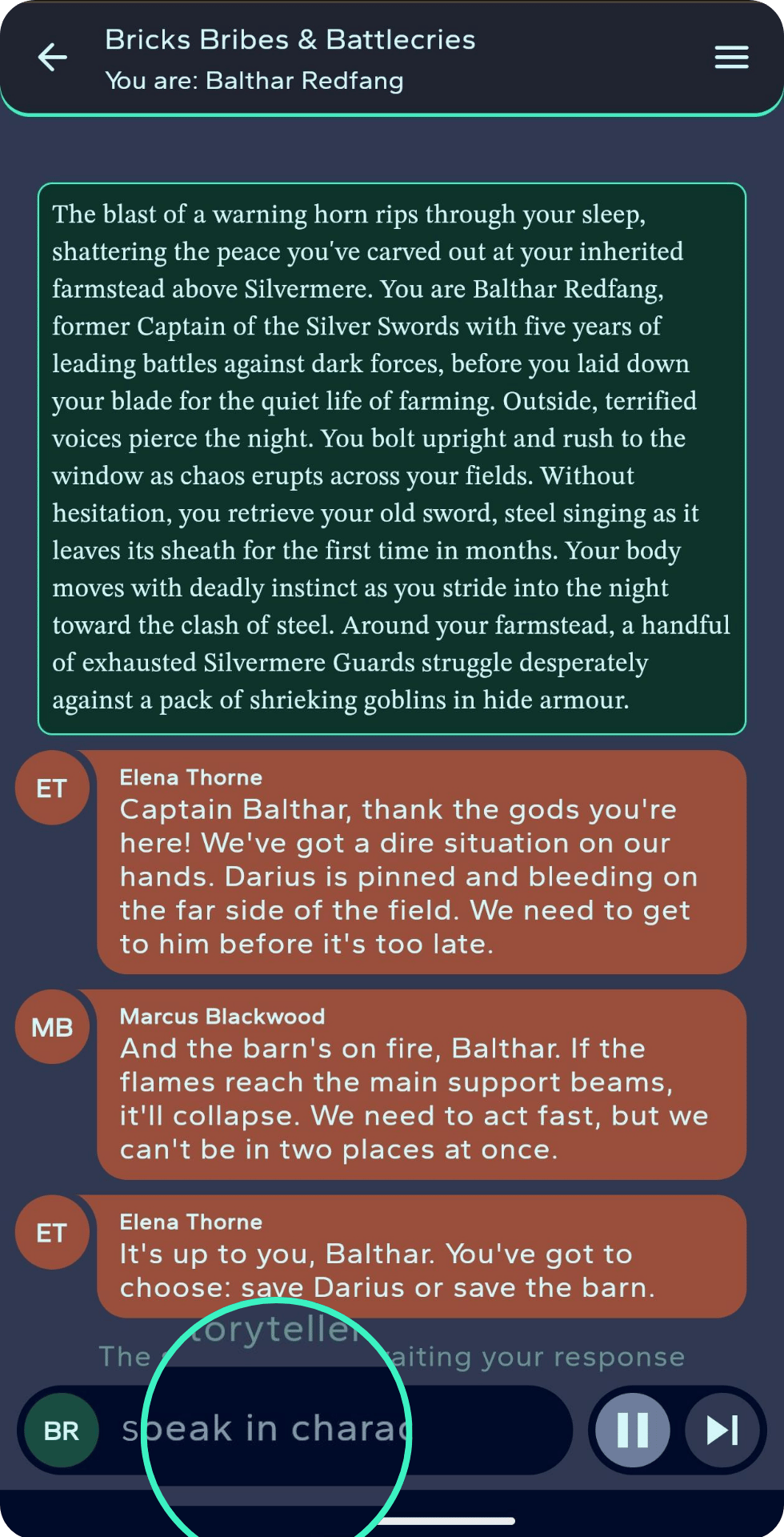 Our storyteller remembers every choice, every conversation, every detail. New places and objects can emerge naturally — and once they're canon, they stay canon.