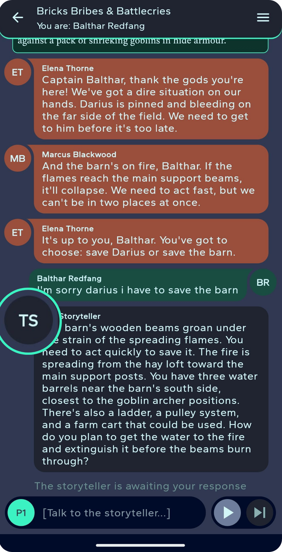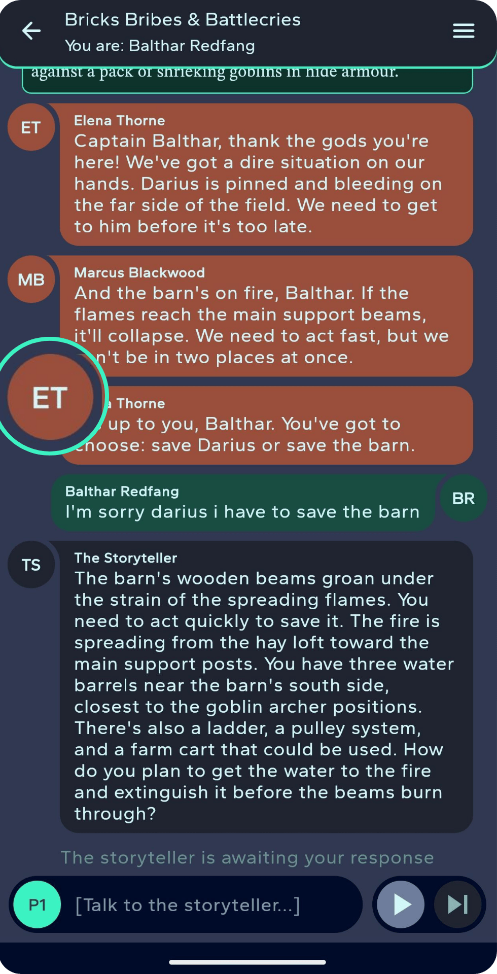 Our storyteller remembers every choice, every conversation, every detail. New places and objects can emerge naturally — and once they're canon, they stay canon.